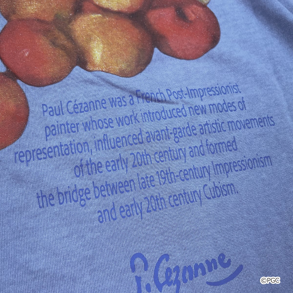 バックプリントにはゼザンヌを代表するリンゴのアートをフォーカス。