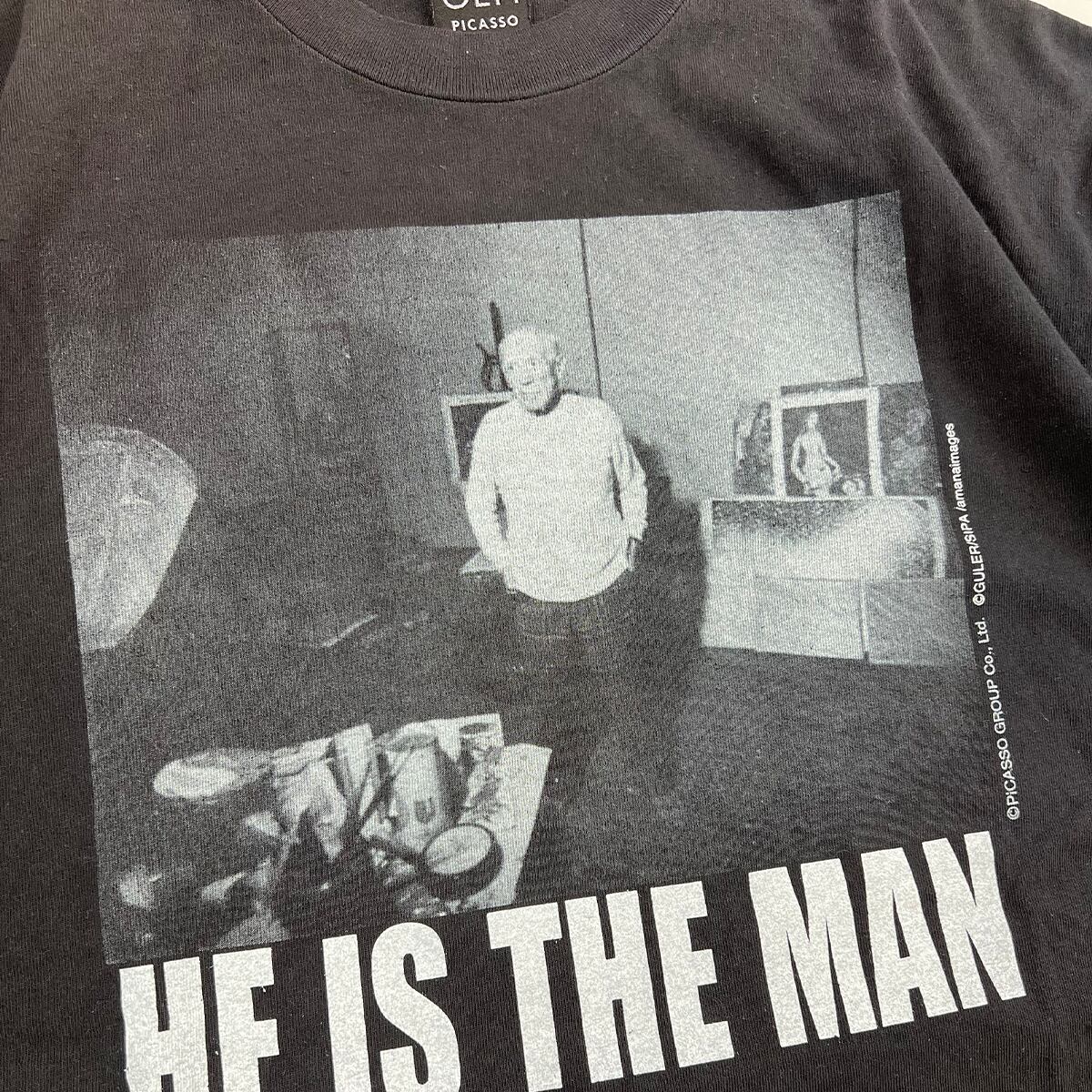 アトリエに立つパブロ・ピカソをとらえた存在感のある一枚。「彼にしかできない偉業だ」そんな想いを"HE IS THE MAN"というフレーズに込めた。